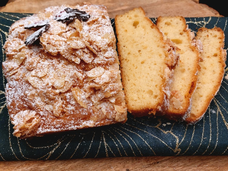 Een heerlijk luchtige cake mix met amandelspijs er doorheen gemengd! Afgewerkt met krokante victoria!