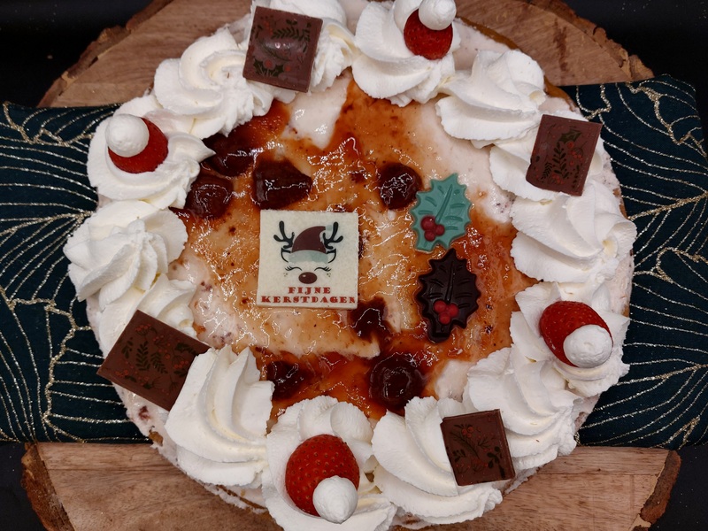 in de smaak: aardbeibavaroise. Denkt u eraan bij ‘variatie’ te selecteren of wij hem moeten snijden voor je?